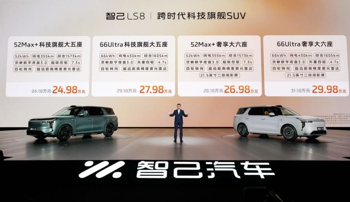 智己LS8搭载全新一代Ultra Wide³超宽体座舱,科技旗舰大五座坐拥同级最强空间,媲美行政级MPV。新车配备同级独有的“柯布西耶”电动沙发椅、12.3L双开门冷暖冰箱、 21.5英寸二排观影屏,更有中国首搭的丹麦B&O豪华音响、4D机械按摩座椅、智控地暖系统百万级“新奢华三件套”,打造家用商务双适配的新奢华体验。装载能力同样出色,满载5人后备箱仍可容纳15个20寸行李箱;搭配首发的Cargo Station Pro载物云台,可直接装入两台标准公路车,承载全家出行热爱。智己LS8还提供奢享大六座版,三排不将就,座座皆舒展;还可灵活切换为同级最宽敞的大四座模式,空间更显宽绰体面。